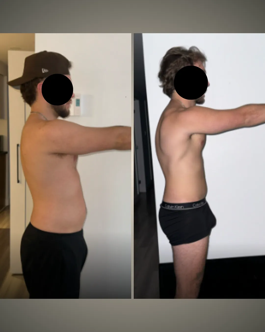 ''Je faisais déjà mes 3-4 PT d'unité par semaine. J'avais essayé d'en faire plus pis de manger moins aussi. À chaque fois je perdais un peu de poids, mais les résultats ne restaient jamais''
